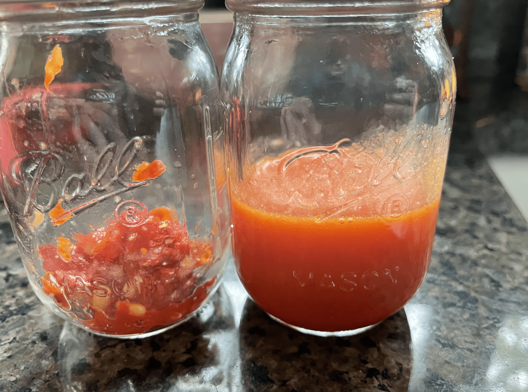 - When it's nice and saucy, pour it through a mesh strainer into the saucepan. I reserved the thick for future projects. I brought the thin back to boil to incorporate flavors.
