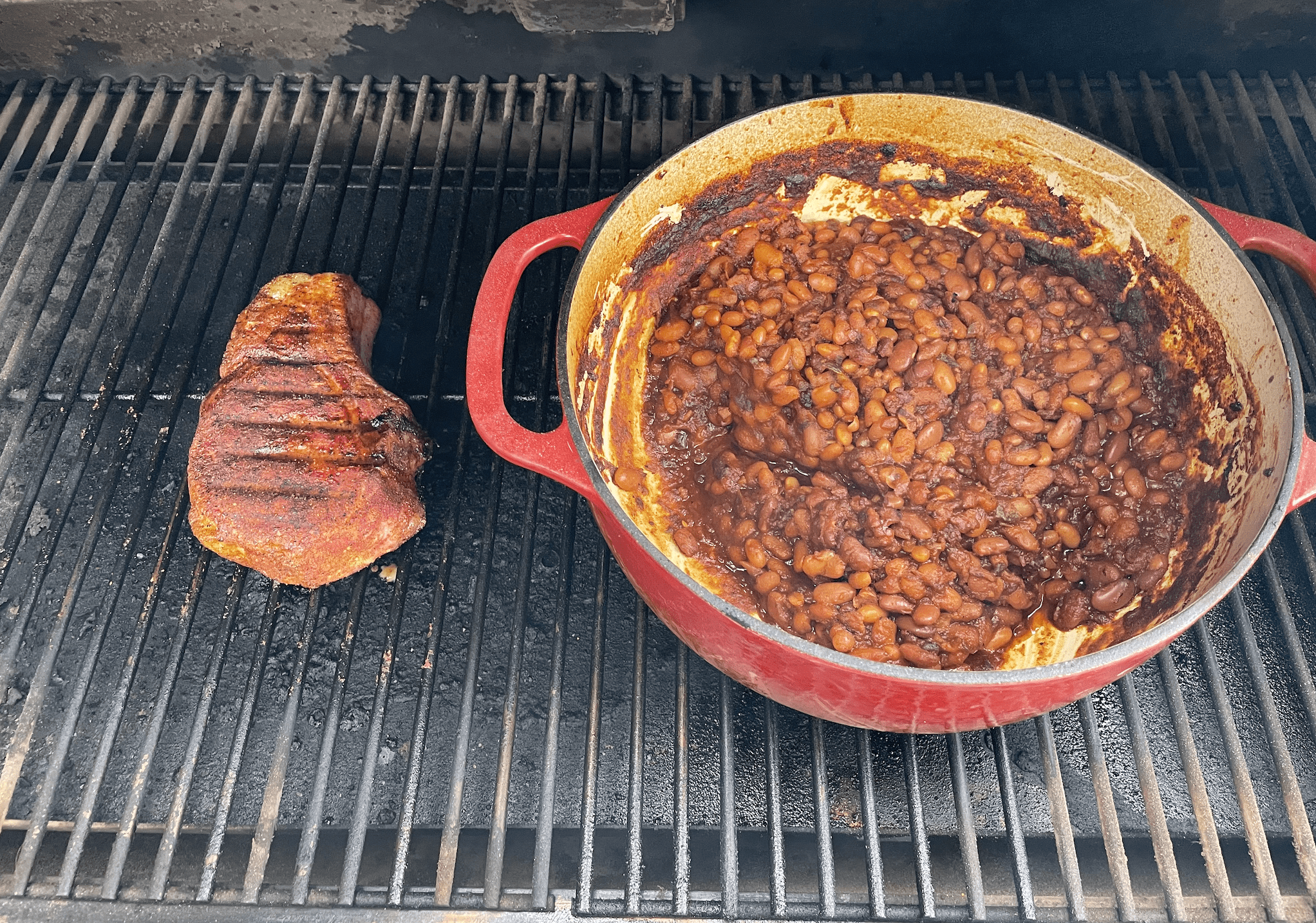 All I did was throw some of that Fine Swine on there and put it on the grates. Kept the same temp, just let it roll. No, wasn’t getting too much smoke at 300 degrees, but I just needed something to accompany the beans.