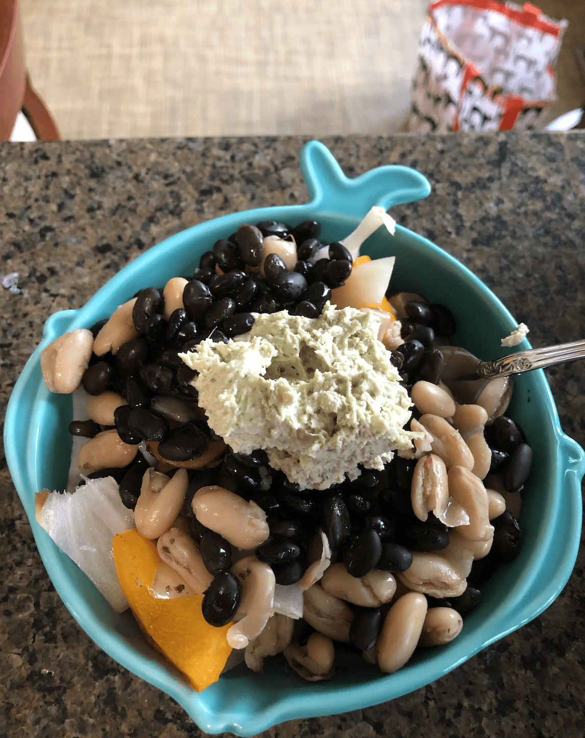 Put the orzo in a bowl. Top it with the vegetables, then some fresh baby spinach, the beans, a dash of fresh lime juice, and the cashew sauce! You have yourself a very tasty meal!