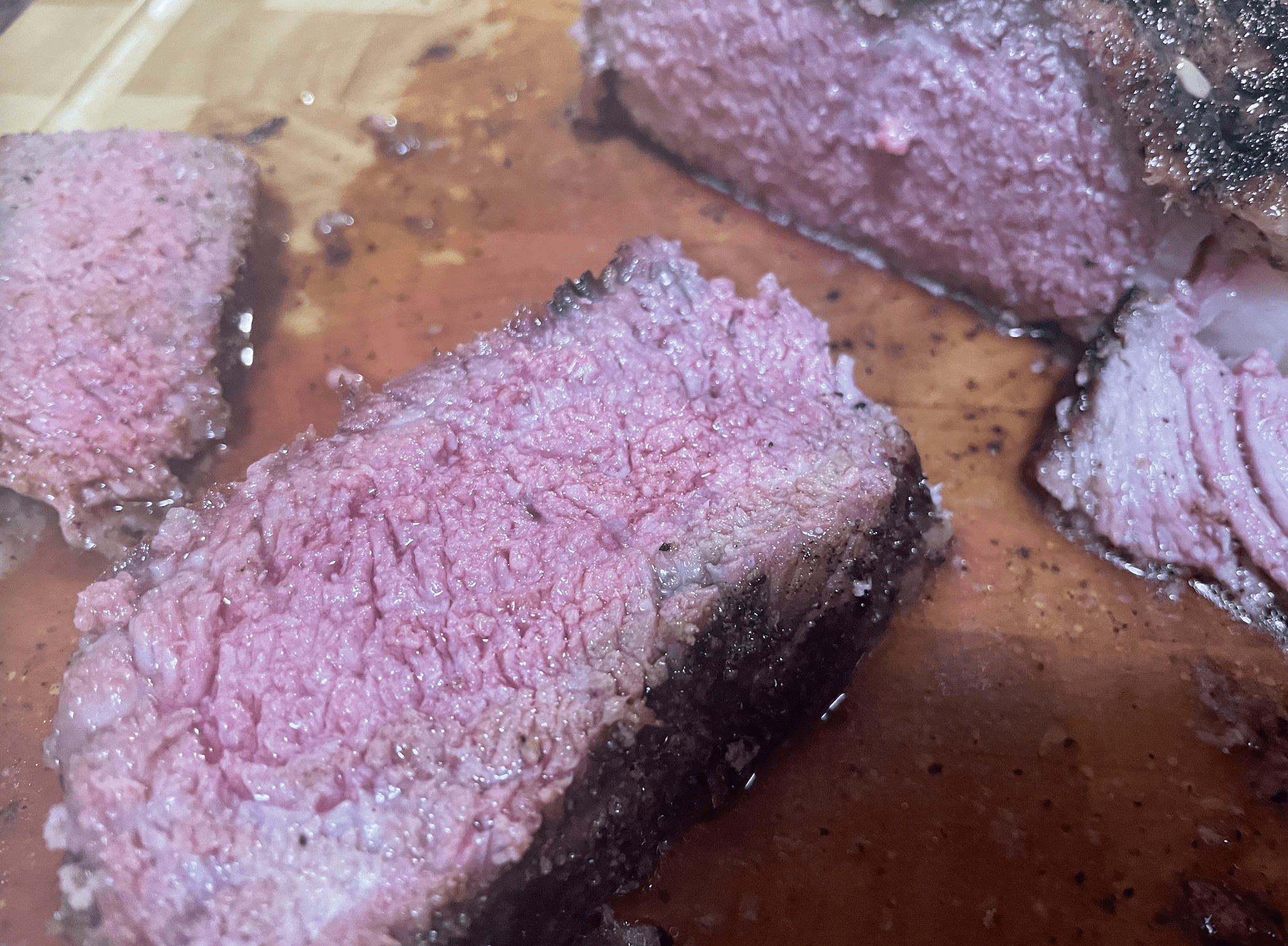 I assumed a bit longer than the steaks – due to size – and it was about accurate. We aren’t cooking for time, we’re cooking for temperature. And now that I was looking for that perfect medium-rare, on a considerably larger cut of meat – I had some considerations.